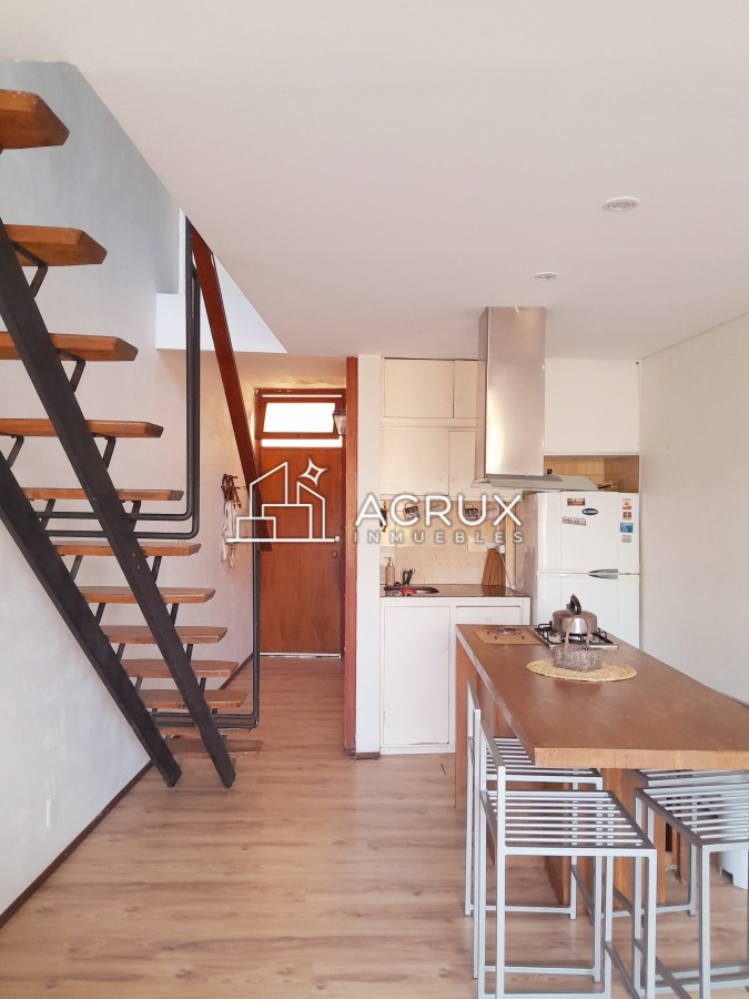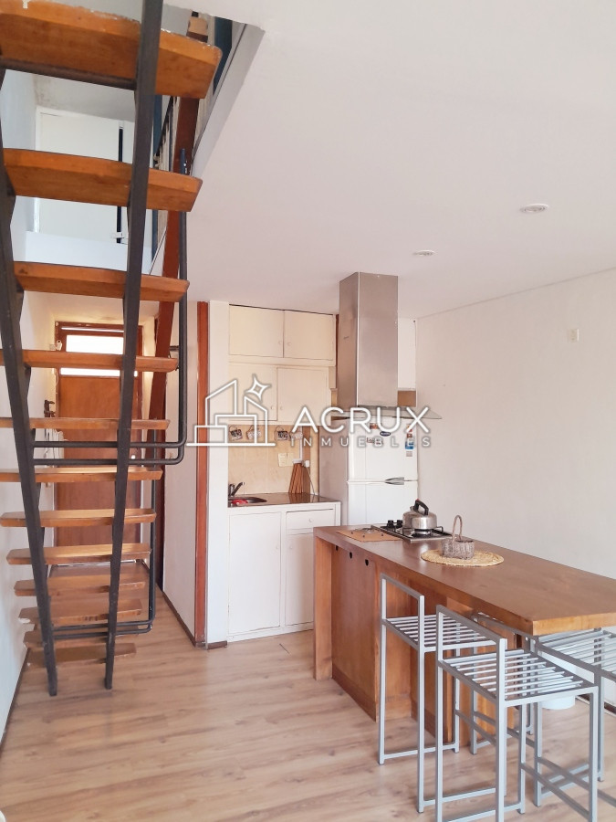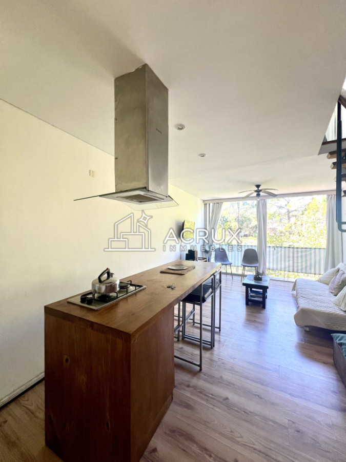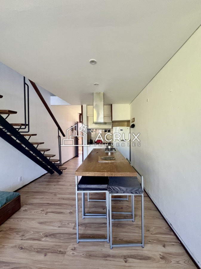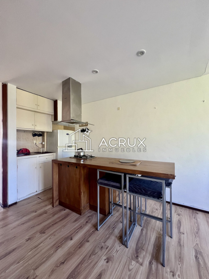 Este acogedor apartamento de un dormitorio y un baño es ideal para aquellos que buscan un espacio íntimo y confortable. La cocina integrada fluye sin esfuerzo hacia el living comedor, creando un ambiente abierto y luminoso.